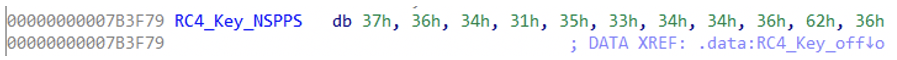 When checking the XRefs to this key to find the usage of it, we can see that it is used through almost the same functions in both malware families.