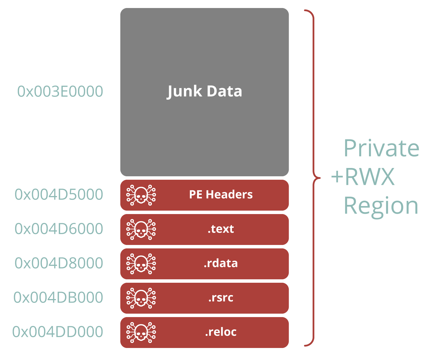 Figure 3. A malicious PE implant stored in private memory that has had its headers wiped.